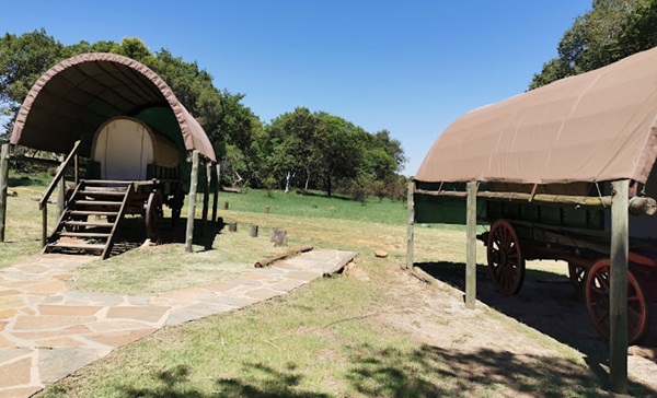 Unique accommodation in beautifully restored ox wagons arranged in a laager.